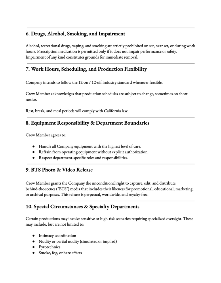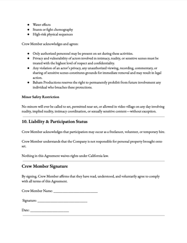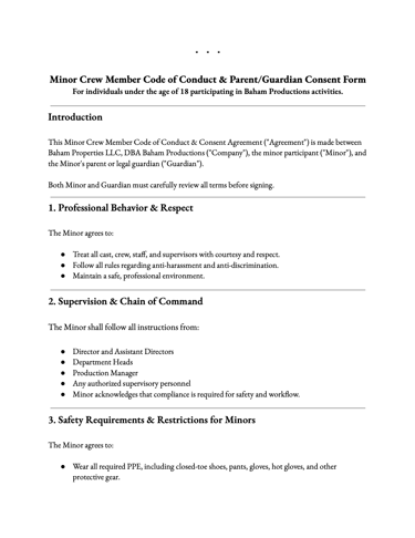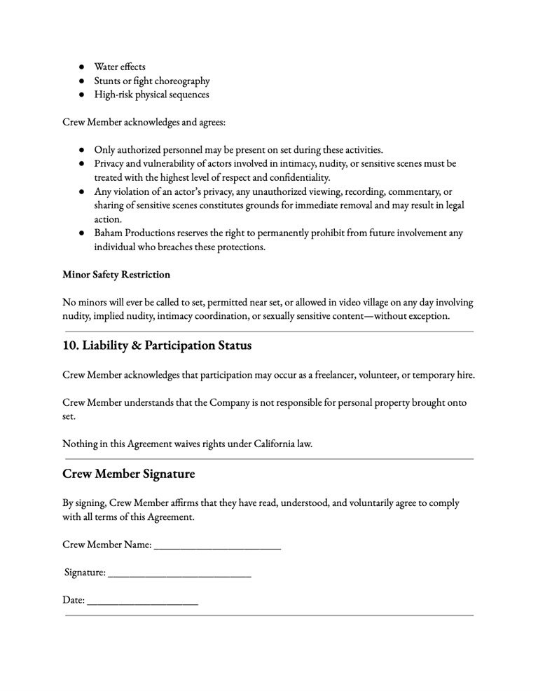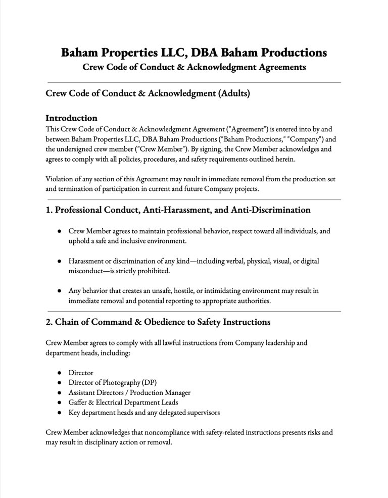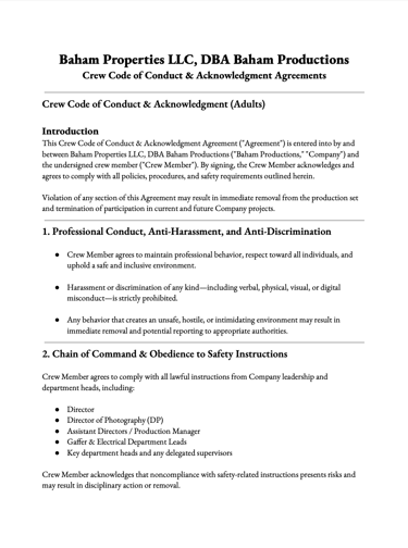 CREW CODE OF CONDUCT & ACKNOWLEDGMENT AGREEMENT